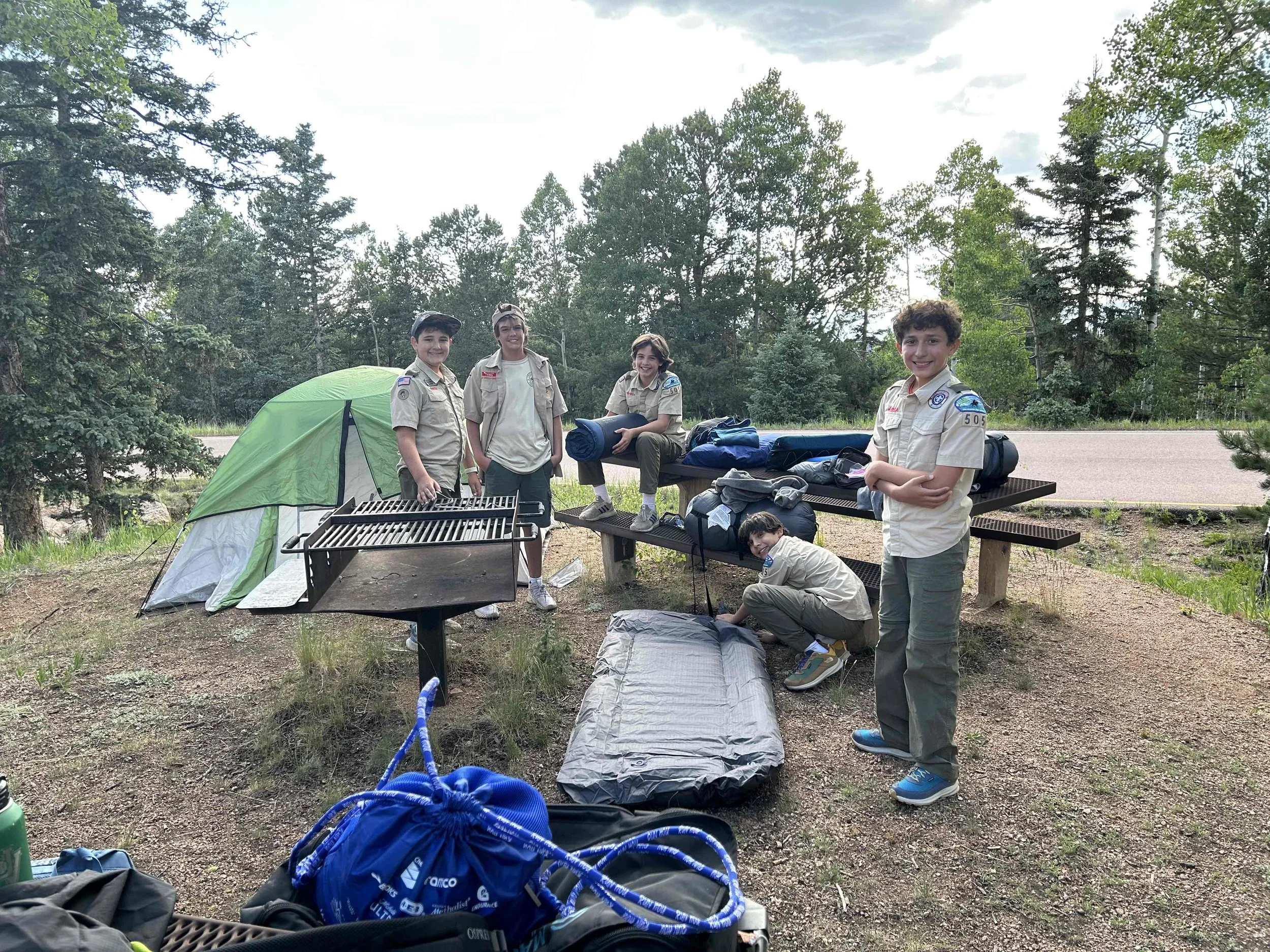 Hover over the Scrapbook heading above to see different pages with photos of Troop 505 activities over the decades.